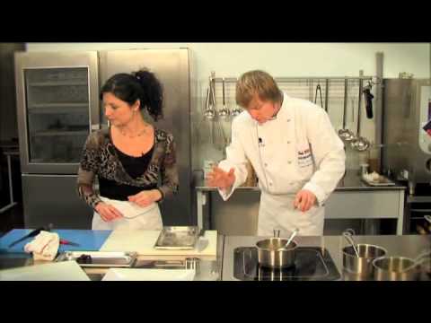 Per preparar la salsa de baia, envio les groselles negres fresques a una paella amb greix d’oca calent i fregida durant un minut aproximadament. A continuació, afegiu la mel, aboqueu-hi vi i barregeu-ho. Mantinc la paella a foc moderat fins que la salsa adquireixi una consistència espessa.