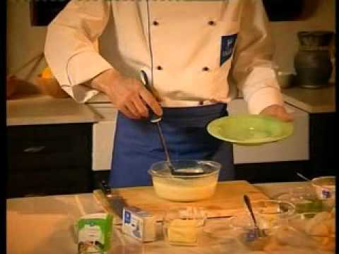 - בלילת הבישול: לדפוק ביצים עם שמנת חמוצה, להוסיף גבינה מגורדת. כתוצאה מכך אנו מקבלים בלילה עבה מספיק. יוצקים קמח או פירורי לחם בנפרד.